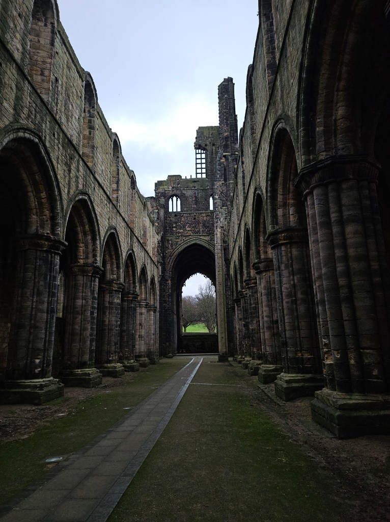 Leeds’s general approach to its history and many ruins is to render them usable. Perhaps the most impressive historical relic the city boasts is Kirkstall Abbey, one of the most complete Cistercian monasteries left in Britain. The Cistercians, an offshoot of the Benedictines, came to Yorkshire in the 1100s and quickly set up a number of abbeys and churches, of which Kirkstall wasn’t the most important, but has remained the most intact. It has an interesting history, including a period where two of its abbots had to be sanctioned for corruption (one had apparently organized a gang of monks to go out and terrorize the villagers), its completion of a fancy new kitchen just 10 years before the abbey was ordered closed by Henry VIII and his new Anglican church, and the period in the 19th century where the main road to and from Leeds ran… right through the church. (Honestly, it’s amazing that anything is left, when you think about it). Today the abbey is mostly closed off as a ruin, but the annual Shakespeare festival performed there through 2009, and since then there has been the occasional concert. Strangely, this constant use has helped preserve some of the abbey’s original majesty. We visited on a particularly quiet Sunday morning. In the dim clouds of December, the church threw off its somewhat sordid history and once more cloaked itself in the otherworldly ruins of time.