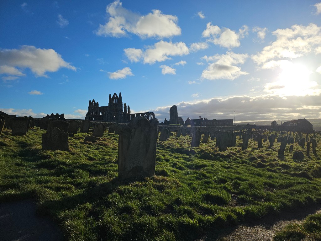 All jokes aside, the power of the Abbey’s positioning over the high cliffs of the North Sea was enough that another abbey and another church were built over the ruins again the following century, creating a space that flourished until Henry VIII’s religious “reforms.” The church about which Mina writes above in Dracula is a real place, leading to endless tramping from tourists. A sign reminds visitors at the entrance that “this is hallowed ground.” The Abbey radiates that feeling of sanctity, despite the violence it has seen (both real and fictional). One can understand how it spoke to worshippers time and time again over the centuries, whether they were Christian believers or those who worship art, stories, and the written word. Small wonder that it was rebuilt after its initial, terrible destruction.