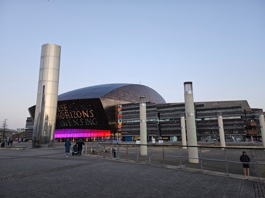 We wandered down to Cardiff Bay, famous these days for its repeat appearances in Doctor Who, and then returned to the train station, sorry perhaps that we could not have seen more of Wales, but not necessarily wishing for more time in Cardiff specifically. While we waited for the train, a young man sat down at their open piano and began to play a medley of the showtunes from La La Land, of all things, another reminder of the reach of cultures across oceans.
